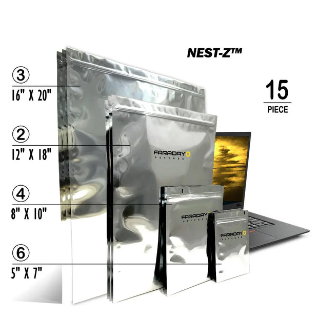 View full details15pc Large Kit NEST-Z EMP 7.0 mil Faraday Bags