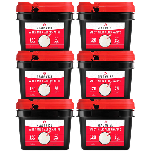 ReadyWiseEach bucket contains 120 servings of long-term powdered whey milk. Each individual bucket contains durable mylar pouches of powdered whey milk tha...