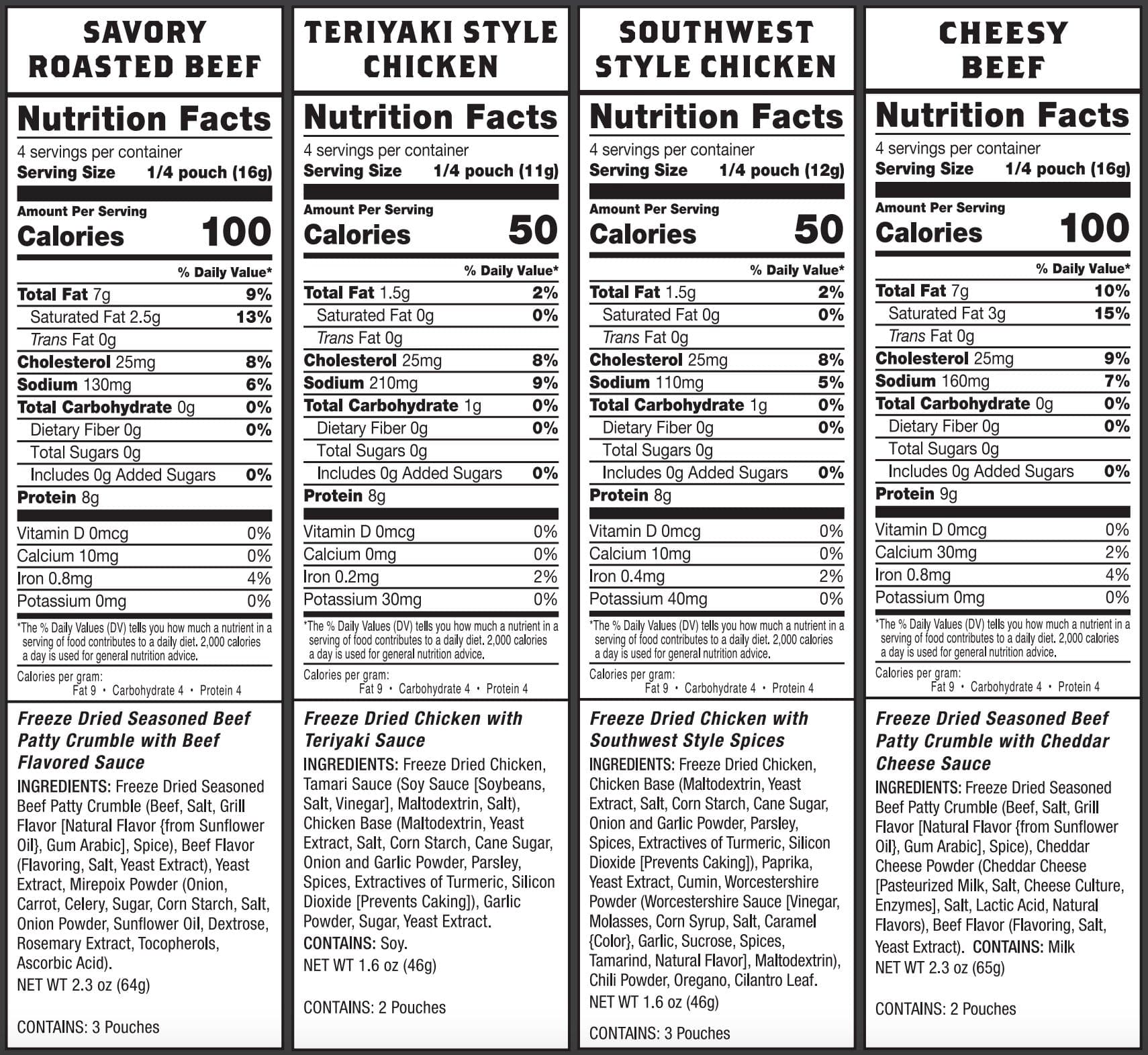 - 2 pouches of Cheesy Beef (8 total servings)