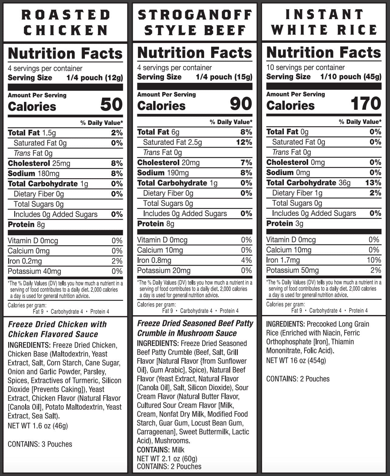 - 3 pouches of Roasted Chicken (12 total servings)